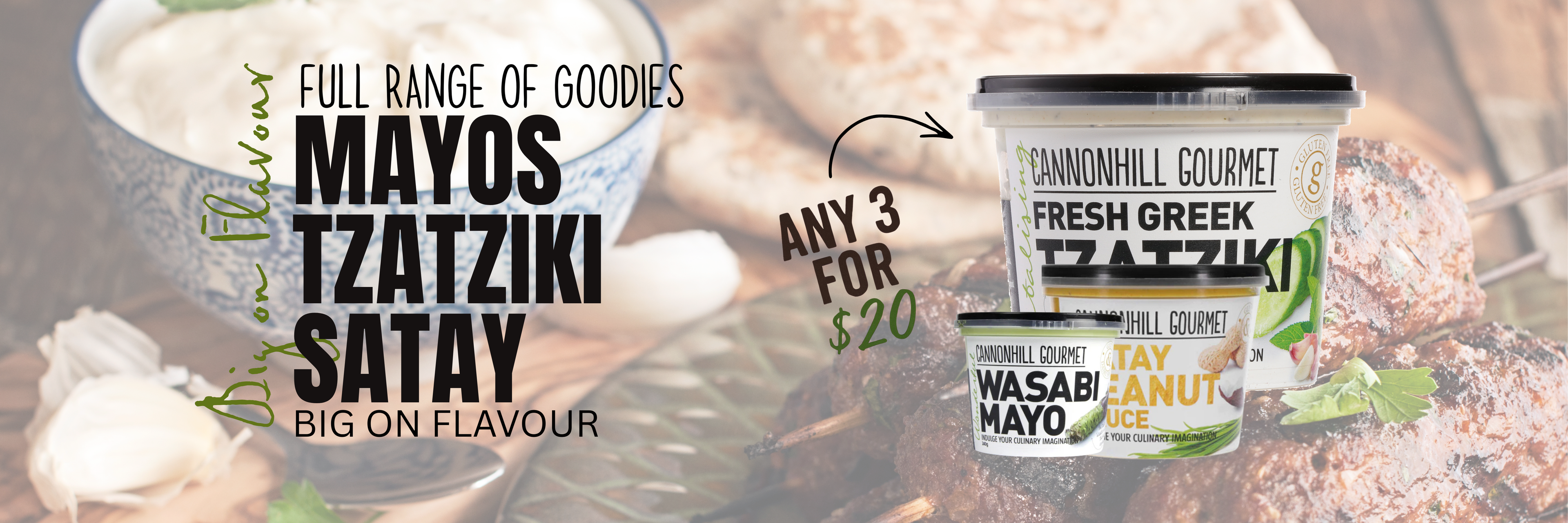 Our Mayos, Tzatziki & Satay range is all about flavour-first condiments made fresh in small batches. From creamy garlic aioli and classic mayo to tangy tzatziki and rich satay, these sauces are designed to elevate everyday meals β whether youβre hosting, BBQing, or upgrading weeknight dinners.